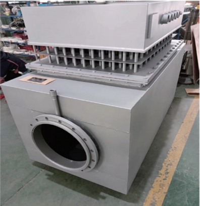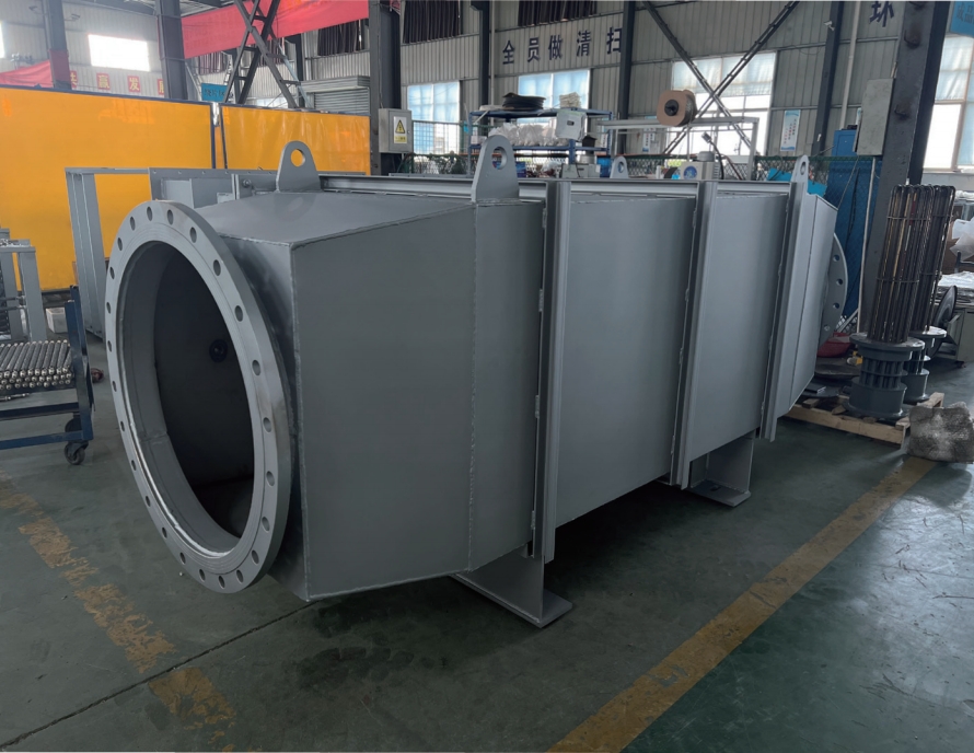 脫硫脫硝加熱器主要用于風道中的空氣加熱,規(guī)格分為低溫、中溫、高溫三種形式,在結(jié)構上的共同之處是采用鋼板支撐電熱管以減少電熱管的振動,接線盒中都裝有超溫控制裝置。另在控制方面除裝有超溫保護外,還在風機與加熱器之間加裝聯(lián)運裝置,以確保電加熱器起動必須在風機起動之后,在加熱器前后加一差壓裝置,以防風機故障,通道加熱器加熱的氣體壓力一般不應超過0.3Kg/cm2,如需超過以上壓力,請選用循環(huán)式電加熱器;低溫型加熱器氣體加熱溫度不超過200℃;中溫型不超過400℃;高溫型不超過650℃。