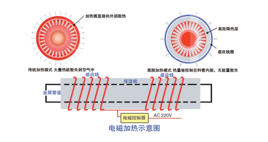 1.高效節(jié)能、快速加熱采用內(nèi)熱加熱方式,即通過電磁感應(yīng)使料筒內(nèi)部金屬管自身發(fā)熱,平均預(yù)熱時間比電阻圈加熱方式縮短2/3,同時熱效率高達95%以上,節(jié)電效果可達30%-70%。